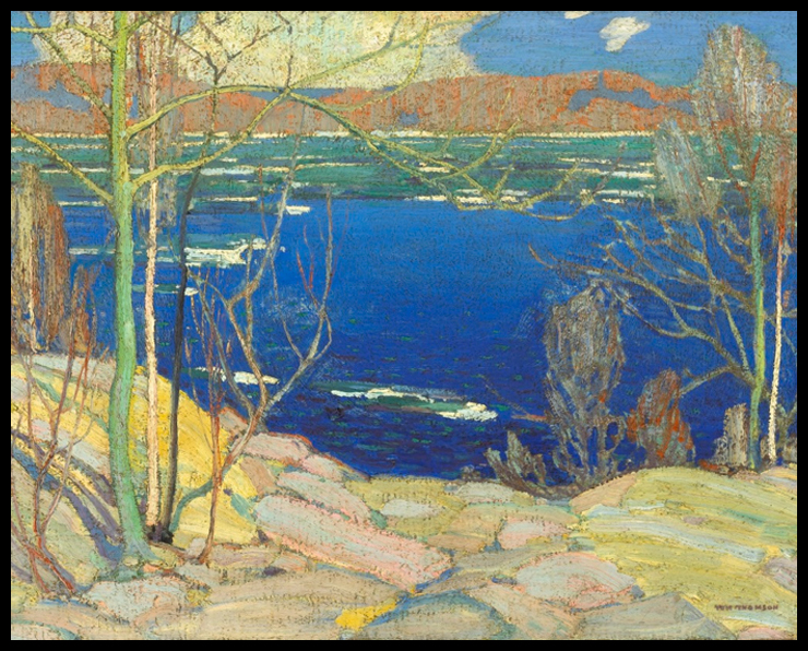Tom Thomson – Spring Ice, 1916Study colour mixing and layering techniques by painting this wonderful lake scene. |